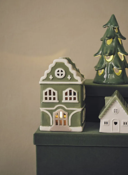 Søstrene Grene – Build your very own mini Christmas village with delicate ceramic houses, a charming addition to your festive décor that looks magical when lit with tiny tealights.