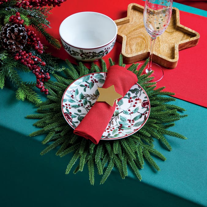 From Home Bargains, pick up beautiful and budget-friendly tableware essentials such as these ‘Festive Feeling’napkins and life-like foliage place mats! Twinkling glassware, and twinkling lights will also elevate the mood and add some magic!